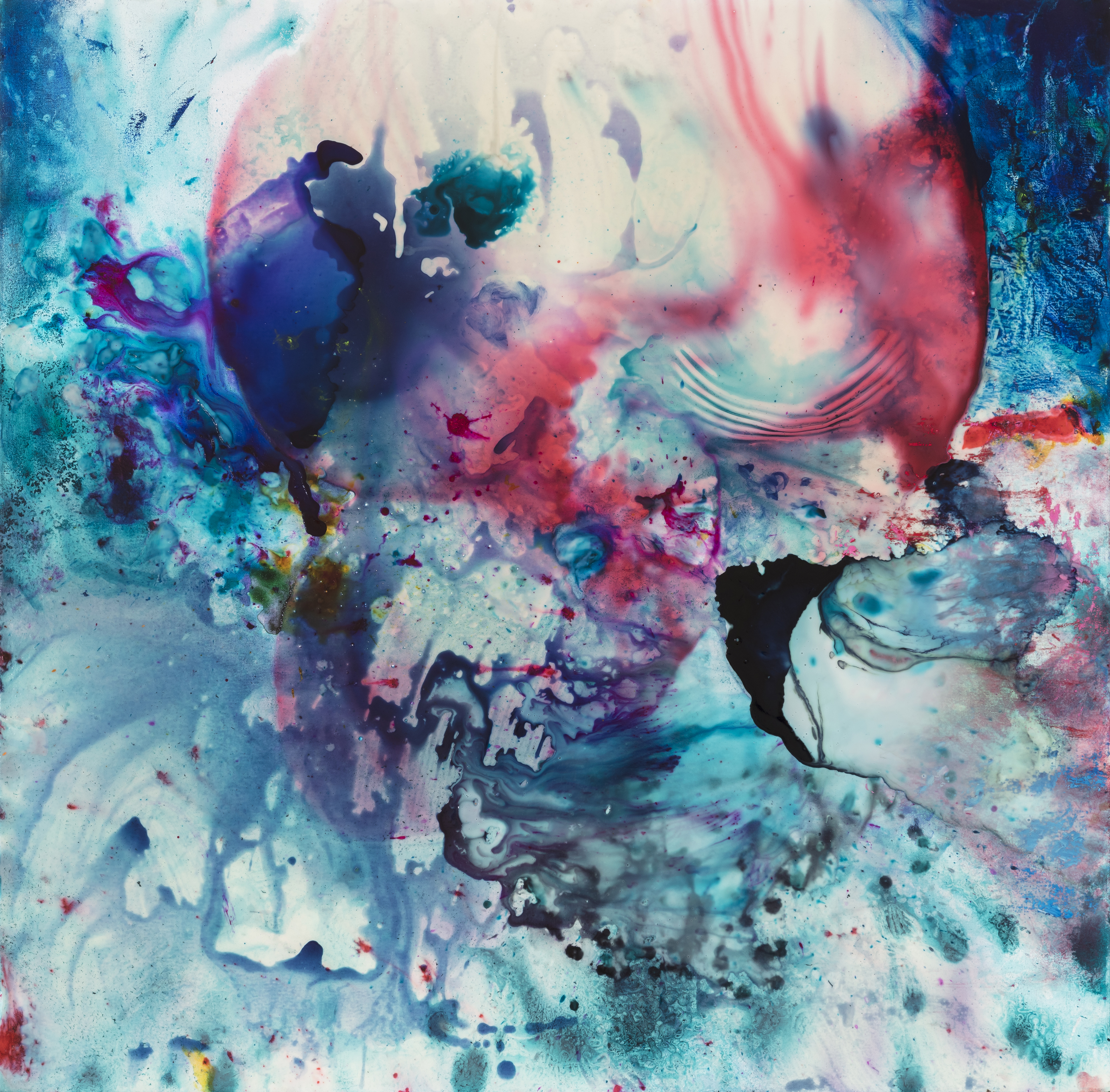 Glue, ink and oil on canvas